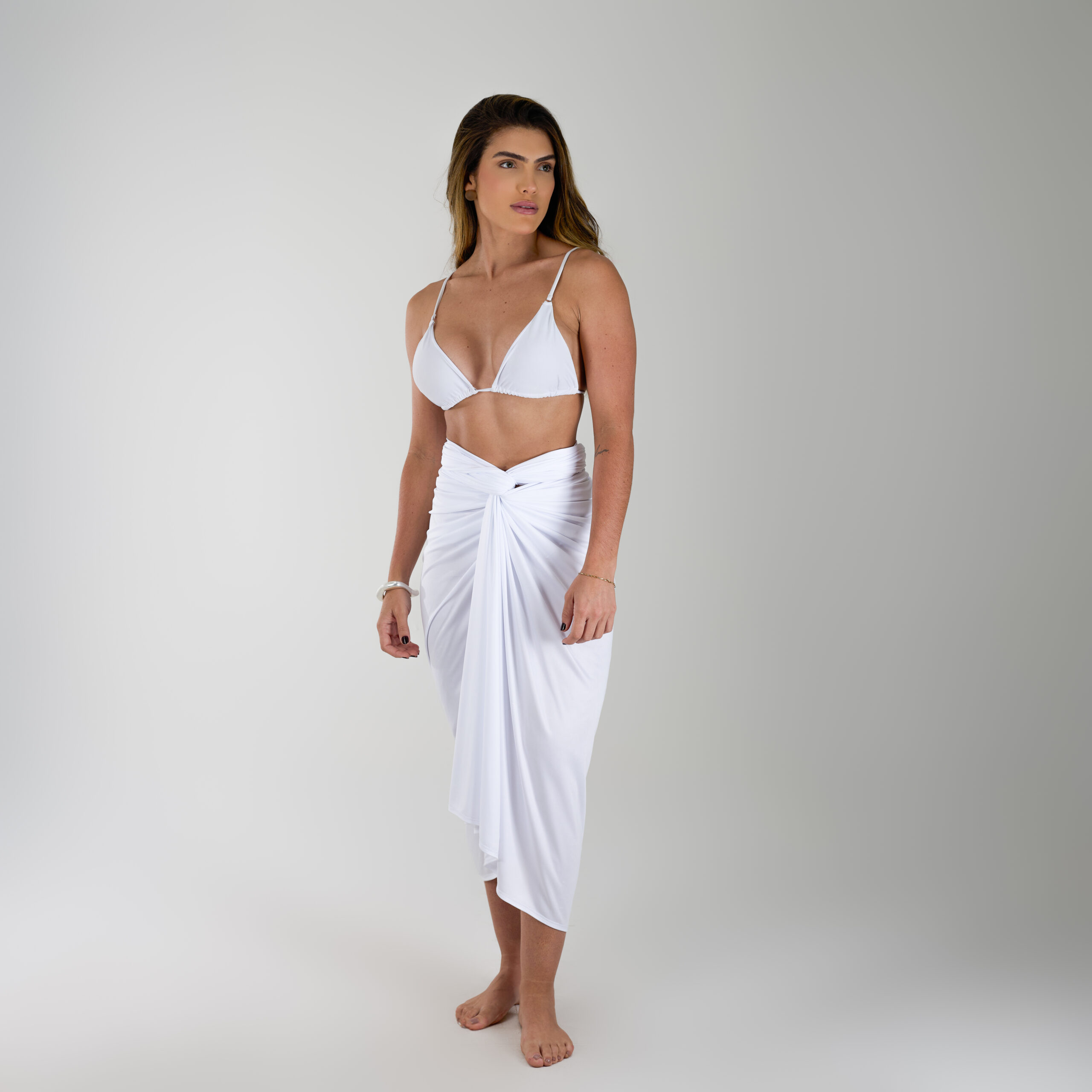 A saia pareô é um convite à criatividade, permitindo inúmeras formas de amarração que se adaptam ao seu estilo e ocasião. Use como saída de praia para um visual leve e descontraído ou transforme-a em uma saia elegante combinada com camisa para um look urbano e contemporâneo.